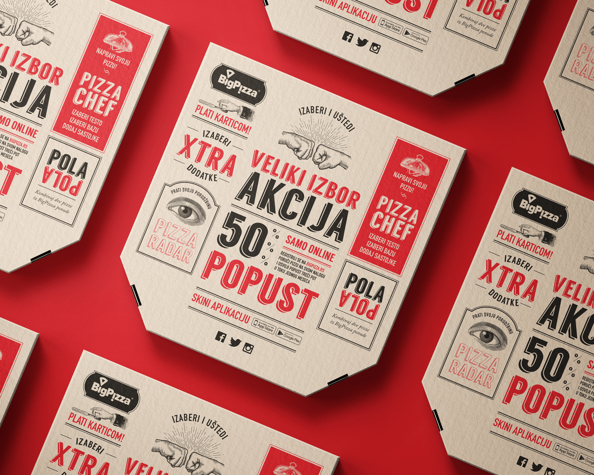 Since 2017, together with a small group of in-house associates, we have been in charge of complete creative direction of BigPizza. Changing the entire brand perspective, from fake Photoshop to real tasty images, had been a funny journey. Multitasking all the time, from creative direction, to design and food styling, making sure even the kitchen utensils looked good. A huge thank you to everyone who participated.