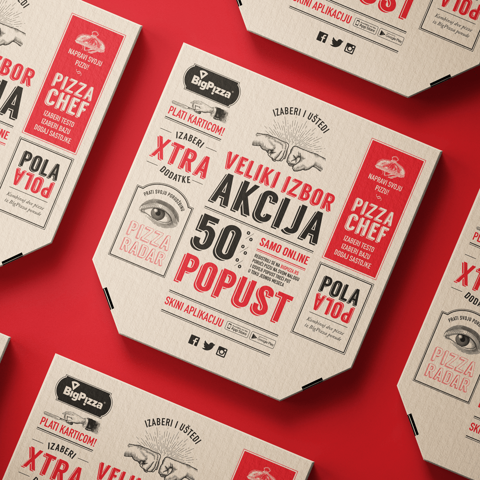 Since 2017, together with a small group of in-house associates, we have been in charge of complete creative direction of BigPizza. Changing the entire brand perspective, from fake Photoshop to real tasty images, had been a funny journey. Multitasking all the time, from creative direction, to design and food styling, making sure even the kitchen utensils looked good. A huge thank you to everyone who participated.