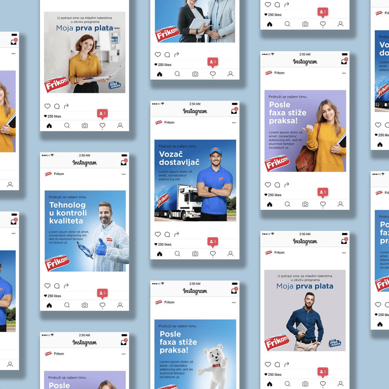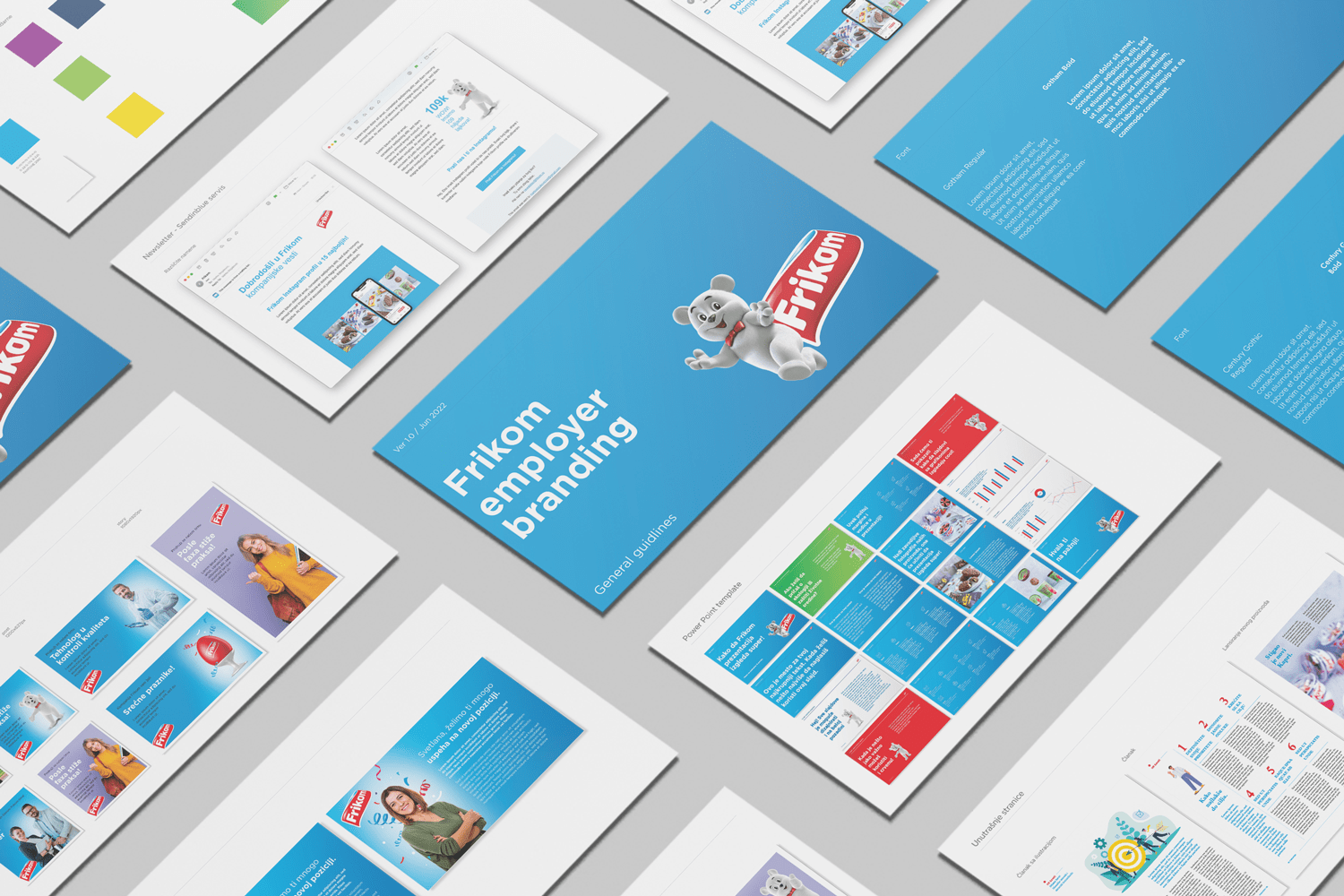 Frikom is part of Nomad, Europe’s leading frozen food company and one of the largest in the world. We were invited by Frikom HR team to create graphic standards for every visual coming from Human Resources department. From welcome letter to LCD environmental ads, from social media posts to employee booklets, consistency was reached in all HR visuals.
