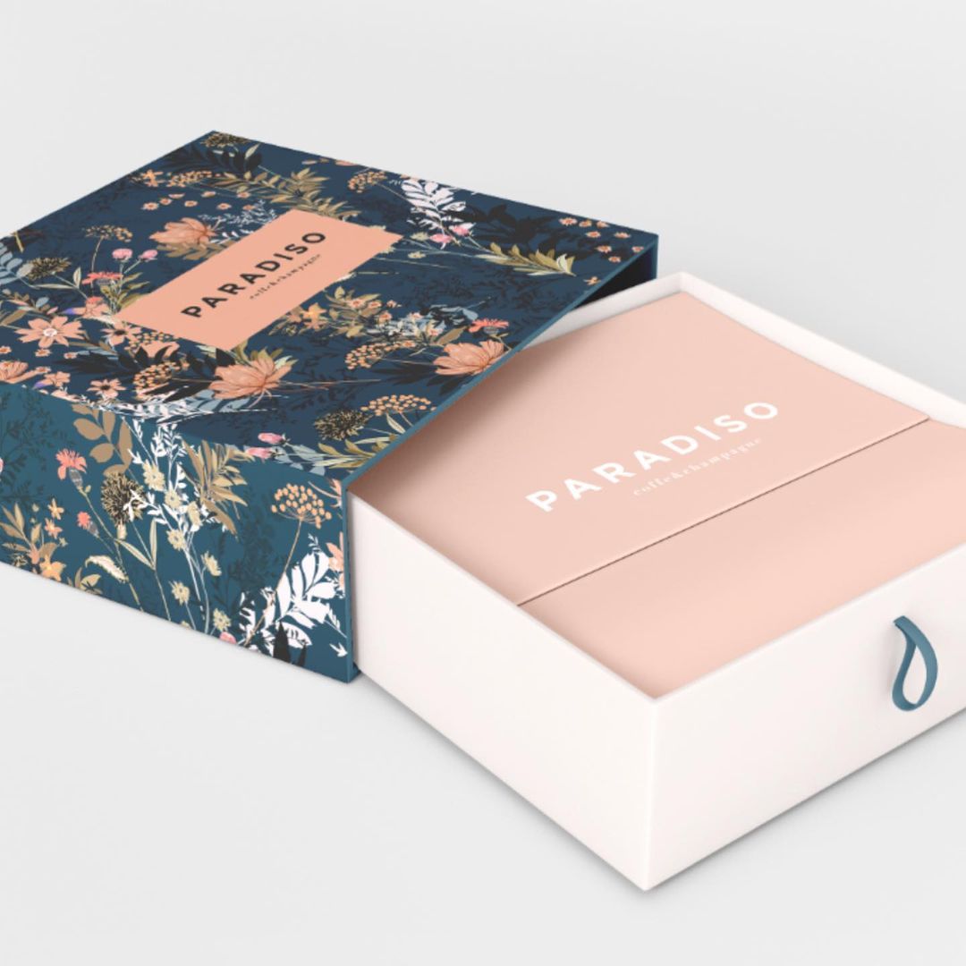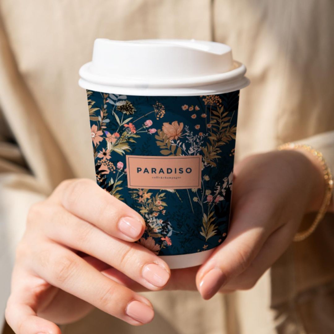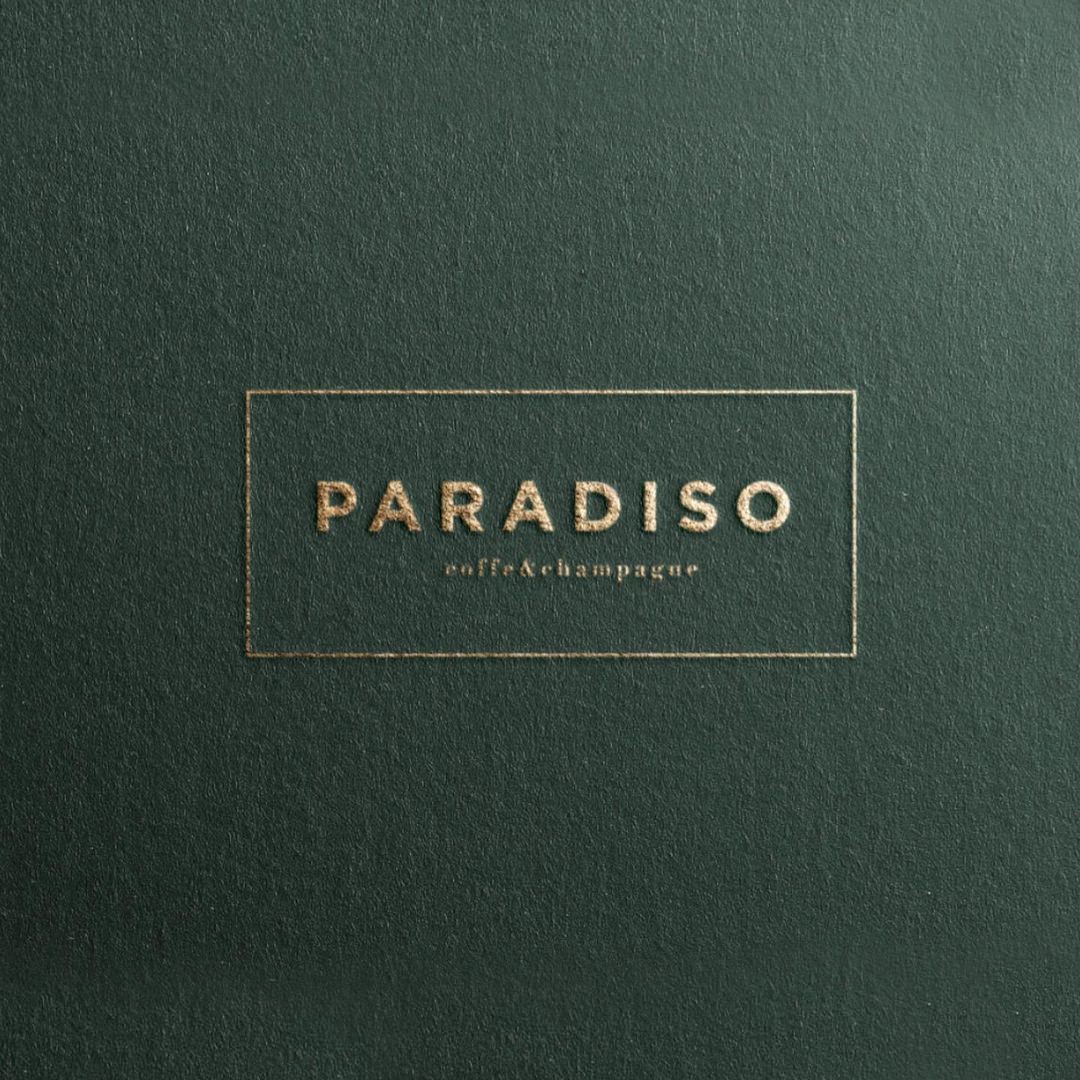 Paradiso is small Slovenian coffee and champagne lounge and cakes takeaway. I created complete visual identity, from logo to takeaway boxes and cups, even some environmental branding.