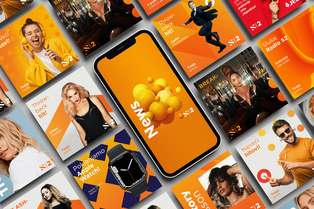 Radio S is one of the largest radio systems in the Balkan region with several umbrella media companies and many radio stations. Our work began with the creation of a Brand Book. From the redesign of the logo for all brands, the color scheme, to the complete standards of creating visuals for each entity separately. With the company’s internal team we are responsible for entire brand look and feel for last four years.